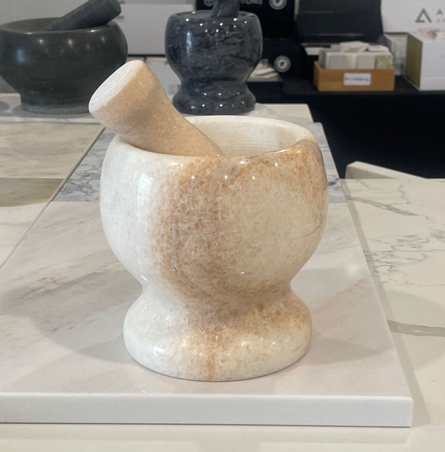 Solid Marble Mortar and Pestle - Apricot